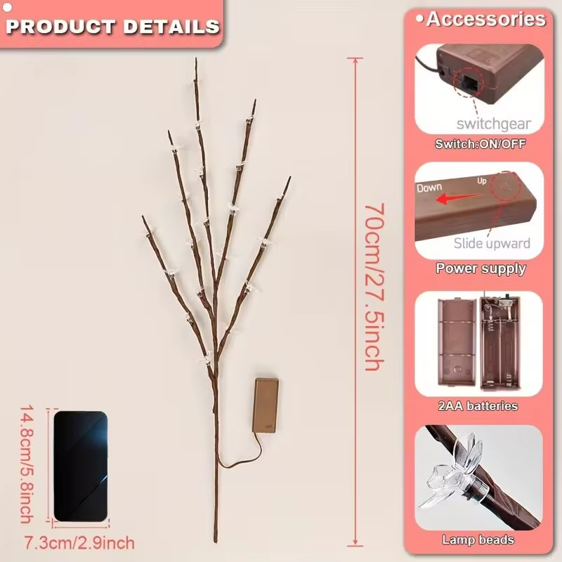 Be the first to review “1/2PC 20LED Cherry Blossom Tree Branch Lights Indoor Outdoor Home Decoration Lamp Romantic Battery-Powered Table Lights For Vase” Cancel reply