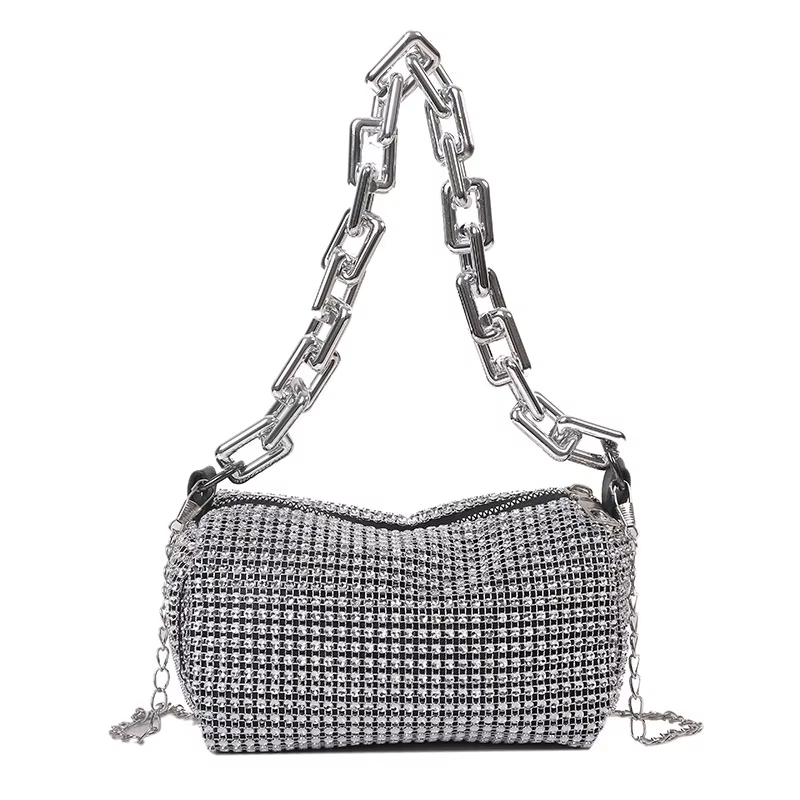 Allover Rhinestone Bucket Bag, Glitter Chain Prom Purse, Women’s Mini Crossbody Bag (6.3*3.54) Inch