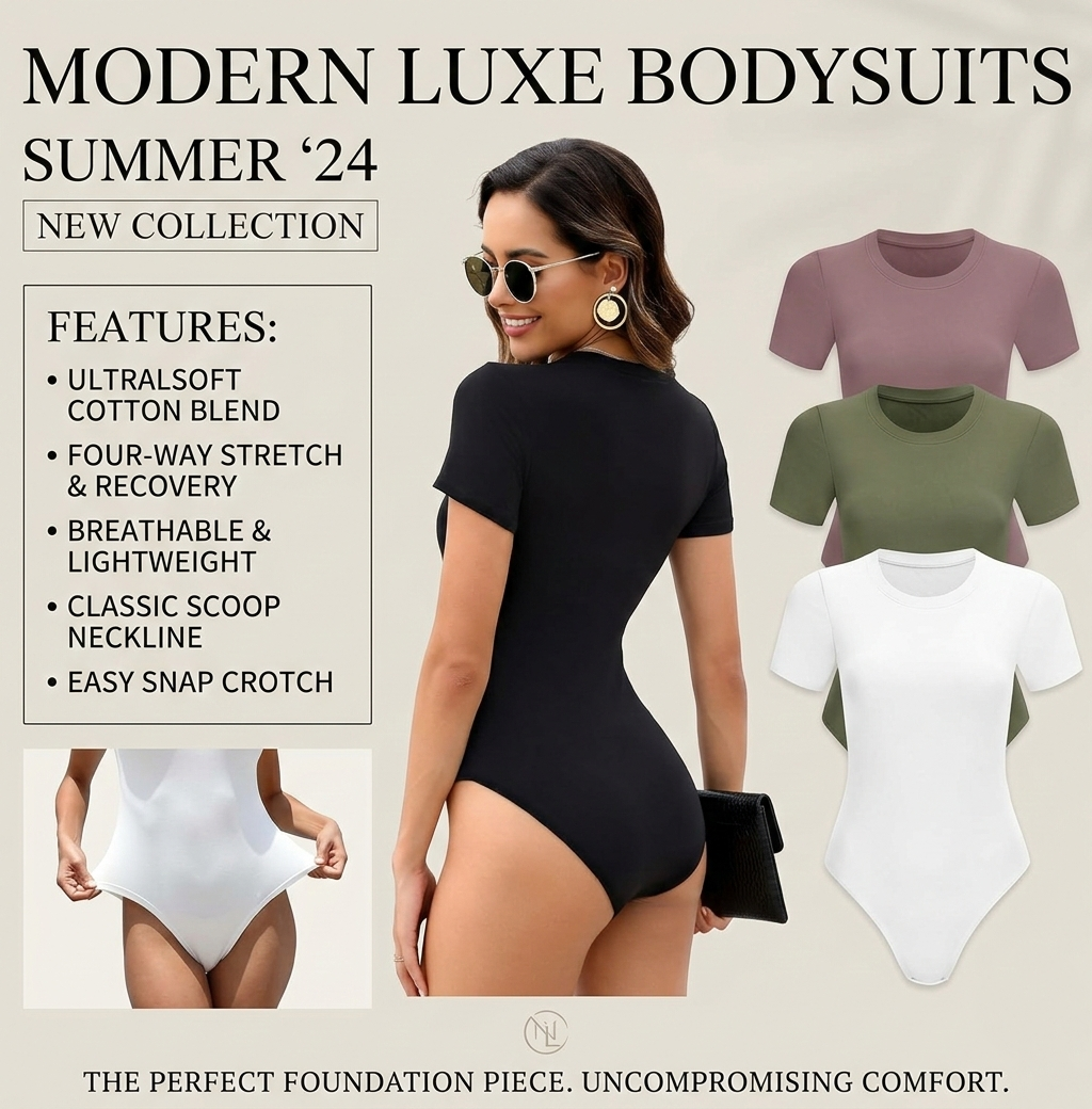 • Womens bodysuit top set by MLYENX with 5 versatile colors