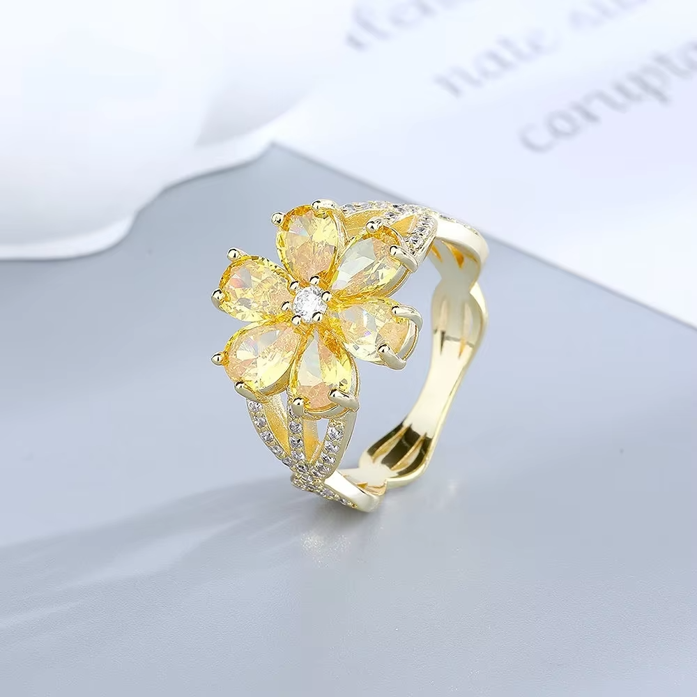 Pink Flower Sparkling Zircon Ring for Women | 18K Gold Plated Shiny Trendy Romantic Accessory | Engagement Wedding Fine Jewelry