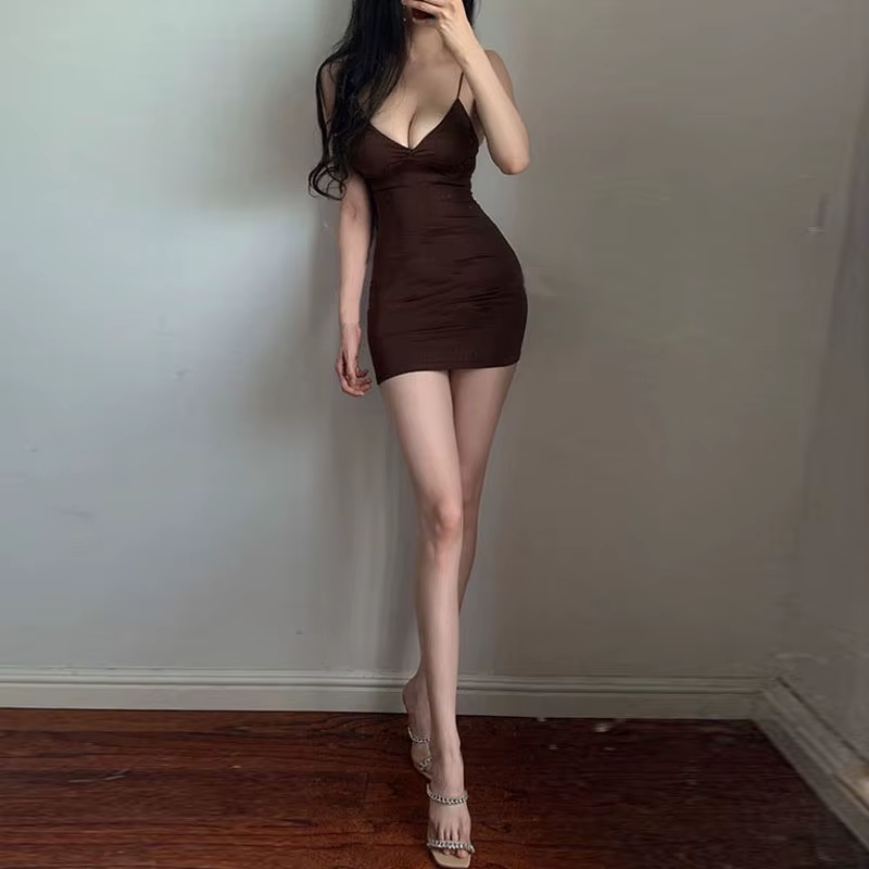 Be the first to review “Sexy Low-cut V Neck Pleated Bodycon Dress | Women Spaghetti Strap Solid Color Sleeveless Mini Dress | Elegant Club Party Vestidos” Cancel reply